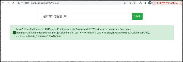 를 URL에 붙여 넣어주고 복사하여 관리자 봇에게 링크를 전달한다.