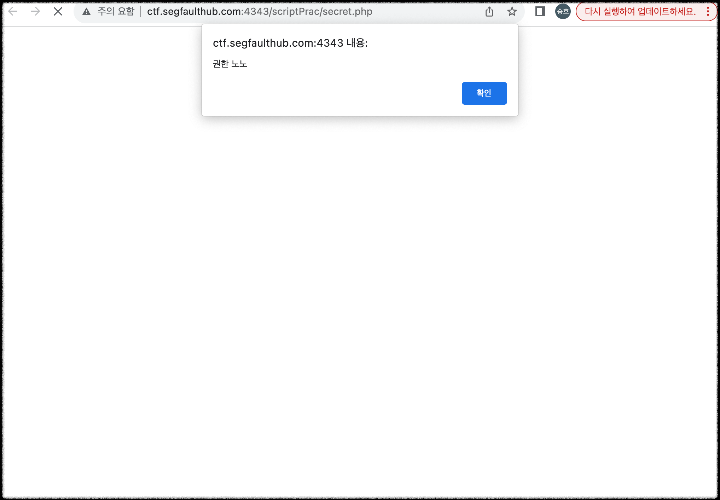접속시 권한이 없다며 '권한 노노'의 경고 알림 창이 뜬다.(