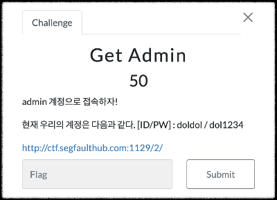 기존의 유저 아이디는 주어졌고 관리자 계정인 admin으로 클라이언트 측에서 정보를 인증하는 취약점(cookie값 변조)을 이용해 접속하여 플래그를 얻을 계획이다.