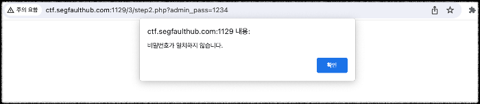 4) 바로 비밀번호가 틀렸다고 알림 창이 떴다.