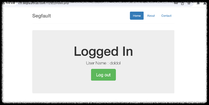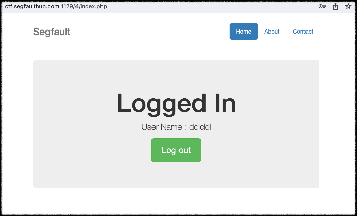 7) 로그인이 되어 플래그를 획득한 화면이 나온다.