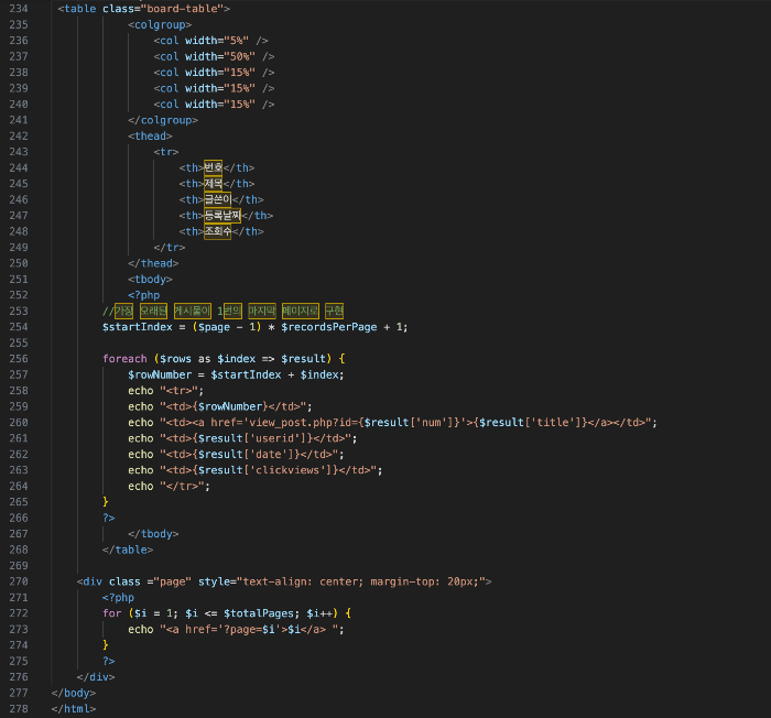 3) startIndex는 foreach 문을 통해 늘어나는 index값을 1씩 더해 화면에 표시되는 Number의 값이 증가하여 가장 나중에 게시한 게시물이 1번의 게시물 번호를 얻게 된다.