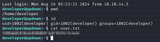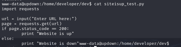 21. "ssh developer@siteisup.htb -i id_rsa"로 ssh 접근을 시도하면 드디어 완전한 developer 계정으로 접근을 하게 된다.