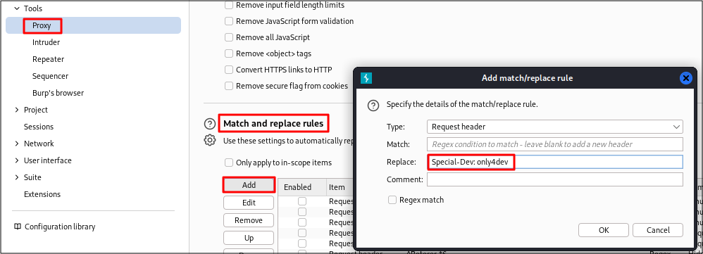 4. .htaccess의 파일 내용은 Special-Dev라는 요청 헤더에 "only4dev" 값이 포함된 경우 접근을 할 수 있다는 뜻이다. 현재 접근이 되는 것으로 보아 서브도메인에서 적용되는 것으로 추측된다.