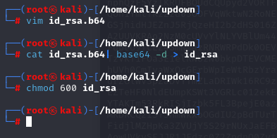 20. base64 인코딩 후 한 줄 출력한 것을 복사하여 로컬 pc에 붙여 넣고 파일 만들기 및 디코딩하여 다시 저장 그리고 권한을 600으로 변경한다.