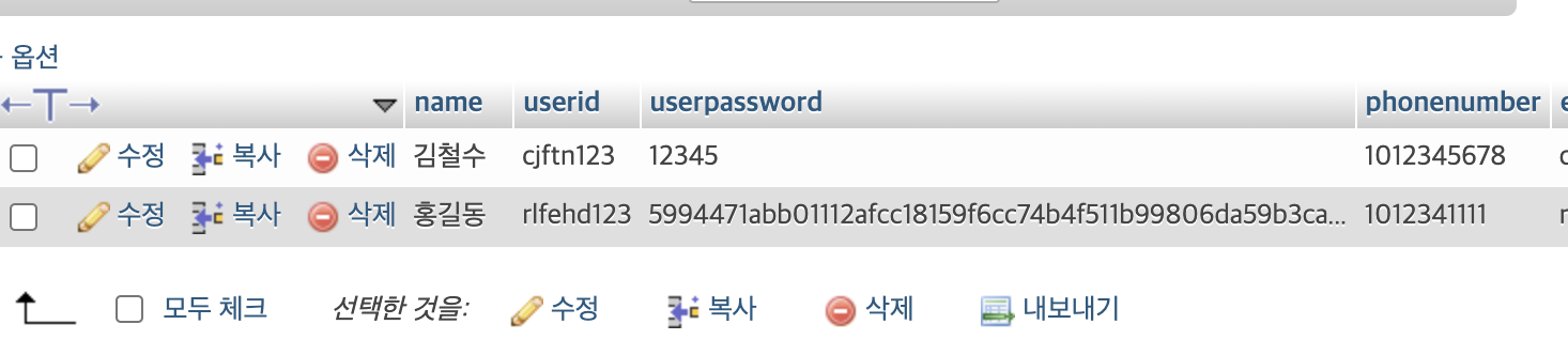 (만약 오류가 뜬다면 db에서 비밀번호 길이를 늘리도록 하자)