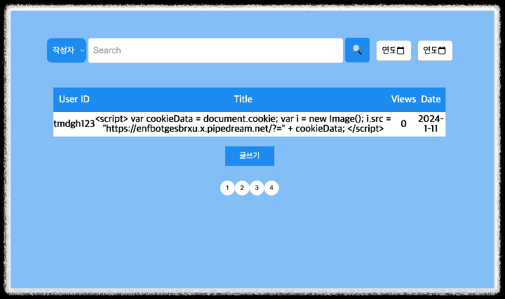 - 제목란에 위 설명했던 쿠키 탈취 코드를 넣어 글쓰기